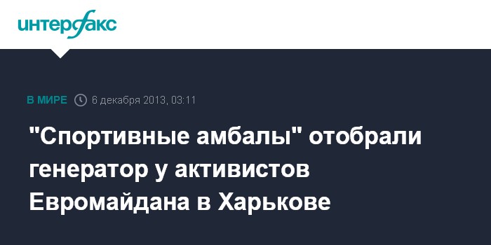 Харьков. 6 декабря. ИНТЕРФАКС-УКРАИНА - У активистов Евромайдана в Харькове неизвестные украли генератор в четверг вечером, когда они привезли его на ночное хранение.