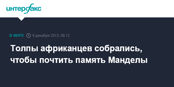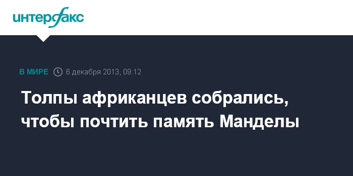 Лондон. 6 декабря. INTERFAX.RU - Толпы людей собираются вокруг дома скончавшегося бывшего президента ЮАР Нельсона Манделы в пригороде Йоханнесбурга, чтобы отдать дань уважения.