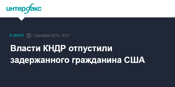 Вашингтон. 7 декабря. INTERFAX.RU - Пожилой гражданин США Мэррилл Ньюман, задержанный в КНДР в октябре, "депортирован" из страны, сообщает американский телеканал CNN со ссылкой на сообщение северокорейского информационного агентства ЦТАК. Сын М.Ньюмана Джефф подтвердил телеканалу информацию об освобождении отца. "Мы рады подтвердить, что М.Ньюман направляется домой", - сообщил он.