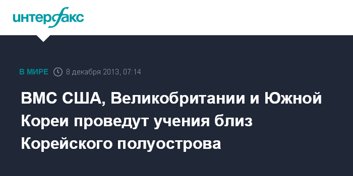 Пекин. 8 декабря. ИНТЕРФАКС - Корабли ВМС Южной Кореи, США и Великобритании 8-9 декабря проведут совместные учения близ Корейского полуострова.