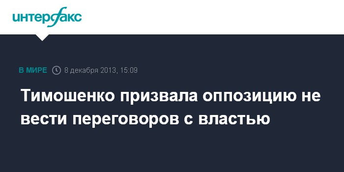 Киев. 8 декабря. INTERFAX.RU - Экс-премьер Украины Юлия Тимошенко, отбывающая 7-летний срок заключения, призвала участников евромайдана не вести переговоров с действующей властью. "Не сдавайтесь, не делайте ни шагу назад, не садитесь за стол переговоров с властью", - говорится в обращении Ю.Тимошенко, которое зачитала в воскресенье со сцены на площади Независимости в Киеве ее дочь Евгения Тимошенко.