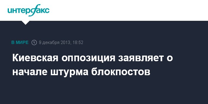 Киев. 9 декабря. INTERFAX.RU - Один из лидеров украинской оппозиции, лидер партии "Свобода" Олег Тягнибок заявил, что в настоящее время происходит штурм блокпостов, организованных оппозицией на улицах Киева.