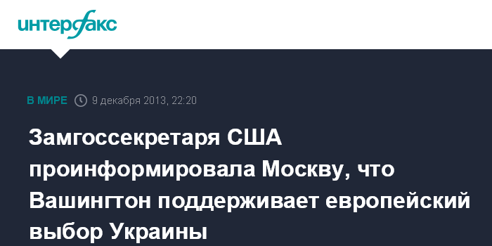 Замгоссекретаря США проинформировала Москву, что Вашингтон поддерживает европейский выбор Украины
