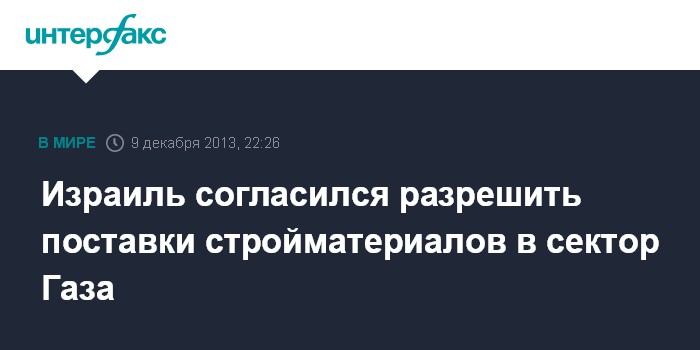 Иерусалим. 10 декабря. INTERFAX.RU - Власти Израиля и ООН пришли к соглашению о снятии запрета на ввоз стройматериалов в сектор Газа, сообщают в понедельник израильские СМИ.
