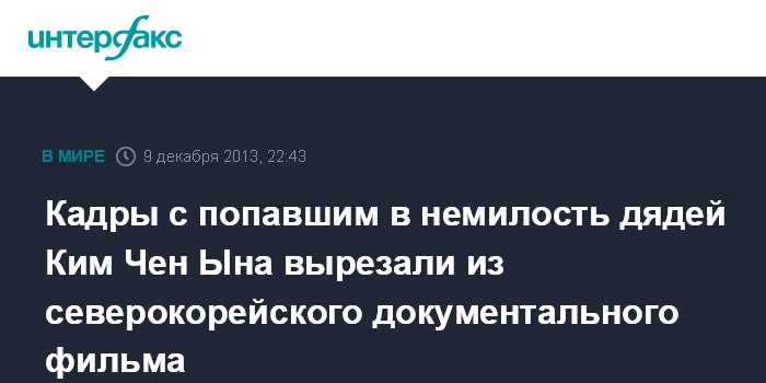 Лондон. 10 декабря. INTERFAX.RU - Кадры с дядей лидера КНДР Чжан Со Тхэком, уволенным со всех занимаемых постов после обвинений в коррупции, вырезаны из документального фильма "Великий товарищ" о Ким Чен Ыне, сообщает в понедельник телерадиокорпорация Би-би-си.