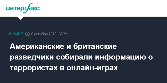 В документах, переданных бывшим подрядчиком Агентства национальной безопасности Сноуденом, говорится, что агенты разведслужб в виртуальных мирах, собирали дату о переговорах игроков в чатах и вербовали информаторов.