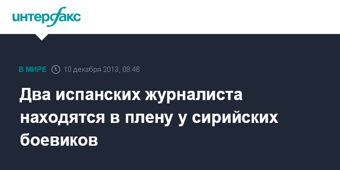 Дубай. 10 декабря. INTERFAX.RU - Связанная с "Аль-Каидой" радикальная группировка в Сирии, выступающая на стороне оппозиции, еще в сентябре похитила и продолжает до настоящего времени удерживать двух испанских журналистов, сообщила во вторник газета El Mundo.