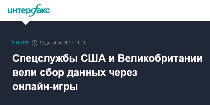 Вашингтон. 10 декабря. INTERFAX.RU - Спецслужбы США и Великобритании вели сбор данных, внедряя своих агентов в качестве игроков в популярные онлайн-игры, пишет американское издание The New York Times со ссылкой на новые документы, обнародованные экс-сотрудником ЦРУ Эдвардом Сноуденом.