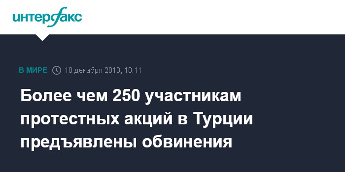 Стамбул. 10 декабря. INTERFAX.RU - Турецкая прокуратура подготовила обвинительные заключения по делам 255 манифестантов, которые минувшим летом принимали участие в массовых акциях протеста в различных городах Турции.