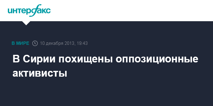 Дубай. 10 декабря. INTERFAX.RU - В пригороде Дамаска Думе неизвестные похитили группу сирийских оппозиционных активистов, сообщает во вторник ливанская газета Daily Star.