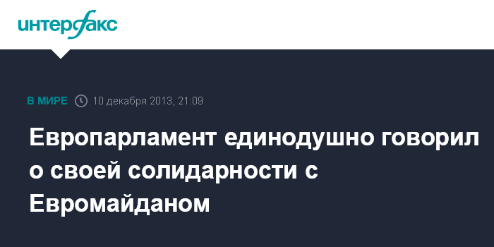 Брюссель. 10 декабря. INTERFAX.RU - Европейский парламент единодушно высказался в поддержку украинских людей на Евромайдане.
