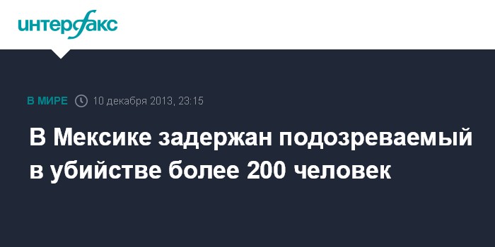 Мадрид. 11 декабря. INTERFAX.RU - Сотрудники правоохранительных органов Мексики задержали предполагаемого преступника, который может быть причастен к убийству более 200 человек, говорится в опубликованном во вторник заявлении национальной комиссии по безопасности Мексики.