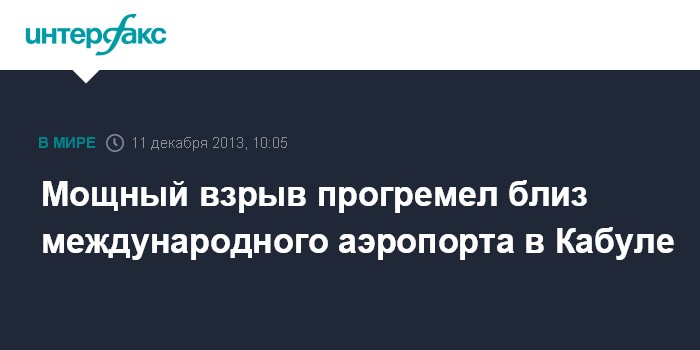 Дубай. 11 декабря. INTERFAX.RU - Заминированный автомобиль взорвался в среду близ международного аэропорта в столице Афганистана Кабуле, сообщают местные СМИ со ссылкой на военного чиновника.