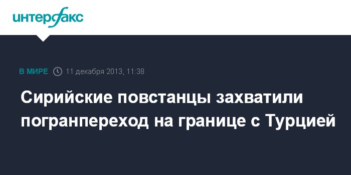 Лондон. 11 декабря. INTERFAX.RU - Боевики из сирийской повстанческой группировки "Исламский фронт" установили контроль над пограничным переходом "Баб аль-Хава" на границе с Турцией, сообщает сирийский Наблюдательный совет по правам человека.