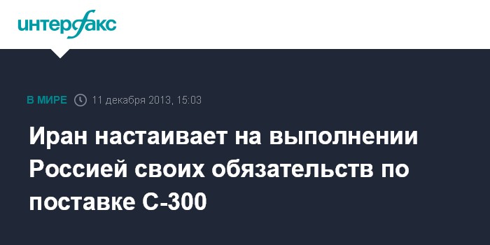 Тегеран. 11 декабря. INTERFAX.RU - Иран настаивает на выполнении Россией своих обязательств по поставке зенитных ракетных систем С-300, заявил глава МИД Ирана Джавад Зариф.