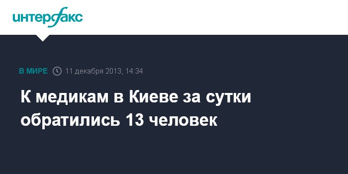 Киев. 11 декабря. INTERFAX.RU - В течение последних суток к медикам в Киеве обратились и были госпитализированы 13 человек, заявила министр здравоохранения Украины Раиса Богатырева.