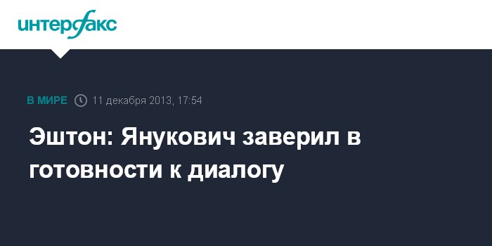 Брюссель. 11 декабря. INTERFAX.RU - Верховный представитель ЕС по вопросам внешней политики и политики безопасности Кэтрин Эштон говорит, что президент Украины Виктор Янукович заверил ее в готовности к диалогу.