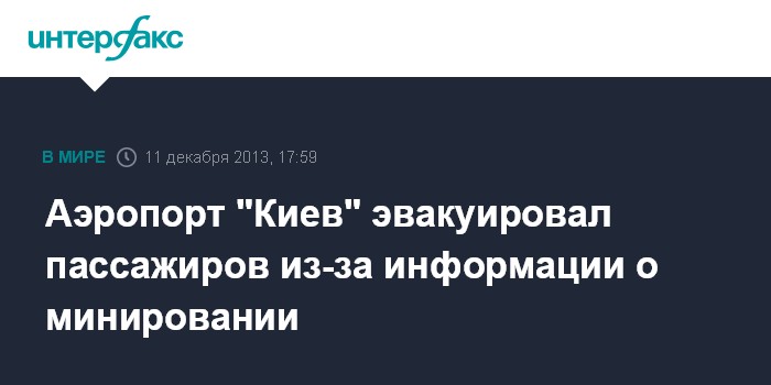 Киев. 11 декабря. INTERFAX.RU - Аэропорт "Киев" (Жуляны), второй по пассажиропотоку в стране, эвакуирует пассажиров из-за поступившей информации о минировании, сообщили агентству "Интерфакс-Украина" в пресс-службе.