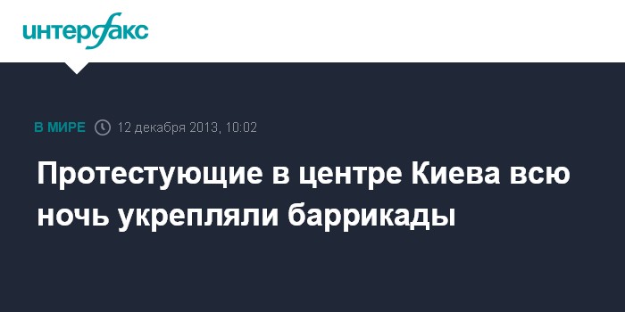 Киев. 12 декабря. INTERFAX.RU - Первую ночь после попытки штурма правоохранителями "евромайдана" митингующие на майдане Независимости провели, сооружая новые и укрепляя ранее возведенные баррикады, а также принимая пополнение от "майдановцев" из других областей Украины.