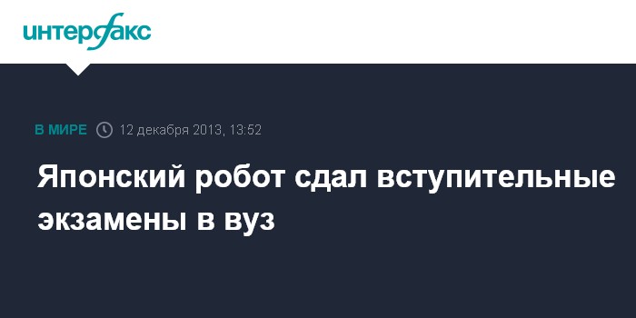 Токио. 12 декабря. INTERFAX.RU - Созданный в Японии робот "Торобо-кун" сдал стандартные вступительные экзамены, позволяющие ему обучаться в 70% частных университетов страны.