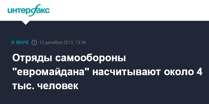 Киев. 13 декабря. INTERFAX.RU - Отряды самообороны "евромайдана" насчитывают 4 тыс. человек, заявляет руководитель комендатуры отряда самообороны майдана Андрей Левус.