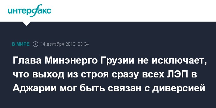 При этом министр напомнил, что несколько месяцев назад было возбуждено уголовное дело, связанное с целенаправленным повреждением ЛЭП, когда в Кобулетском районе Аджарии по высоковольтной линии электропередачи были произведены выстрелы.