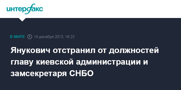 Киев. 14 декабря. INTERFAX.RU - Президент Украины Виктор Янукович подписал указы об отстранении Александра Попова от должности главы Киевской городской государственной администрации и Владимира Сивковича - с должности заместителя секретаря Совета национальной безопасности и обороны. Соответствующие указы размещены на официальном сайте главы государства в субботу.