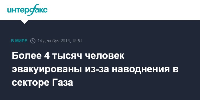 Иерусалим. 14 декабря. INTERFAX.RU - Сильное наводнение в секторе Газа вынудило более 4 тыс. человек покинуть свои дома, сообщает в субботу ливанская газета The Daily Star.