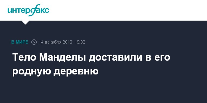 Лондон. 14 декабря. INTERFAX.RU - Гроб с телом Нельсона Манделы в субботу привезли к месту похорон в деревне Куну, где экс-президент ЮАР вырос и жил после ухода из политики, сообщает британская телерадиокорпорация BBC.
