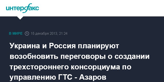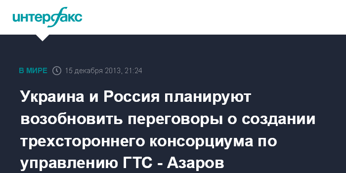Украина и Россия планируют возобновить переговоры о создании трехстороннего консорциума по управлению ГТС - Азаров