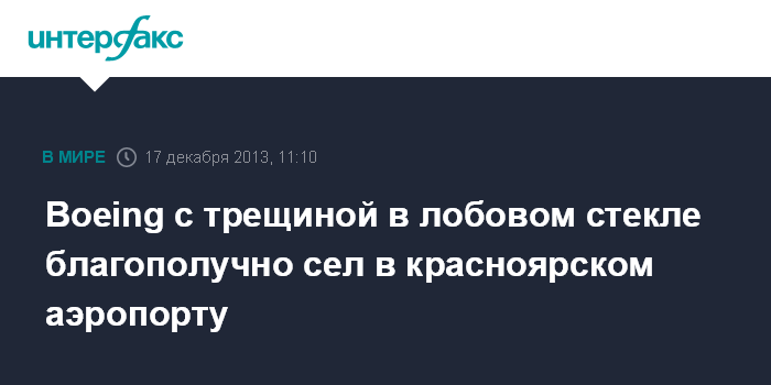 Boeing с трещиной в лобовом стекле благополучно сел в красноярском аэропорту