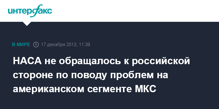 НАСА не обращалось к российской стороне по поводу проблем на американском сегменте МКС