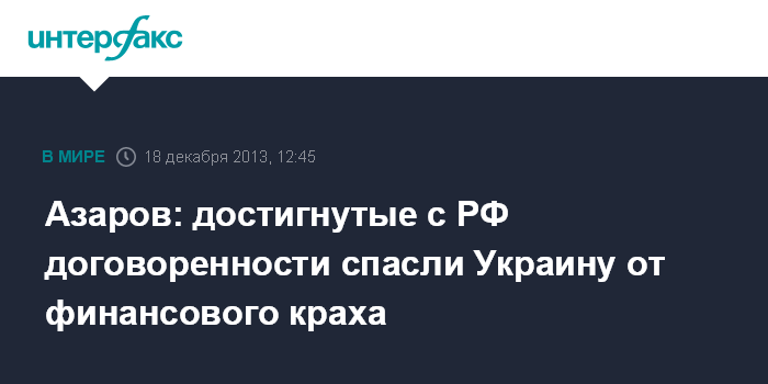 Азаров: достигнутые с РФ договоренности спасли Украину от финансового краха