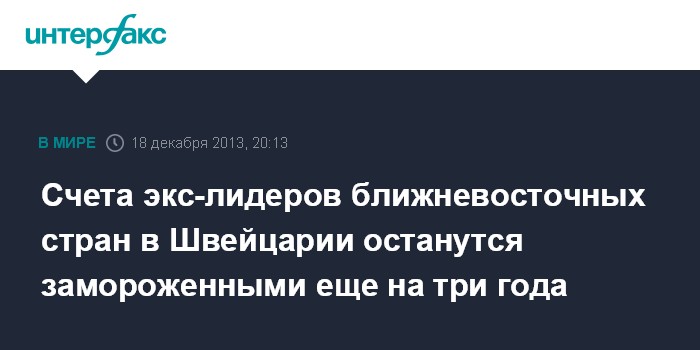 Счета экс-лидеров ближневосточных стран в Швейцарии останутся замороженными еще на три года