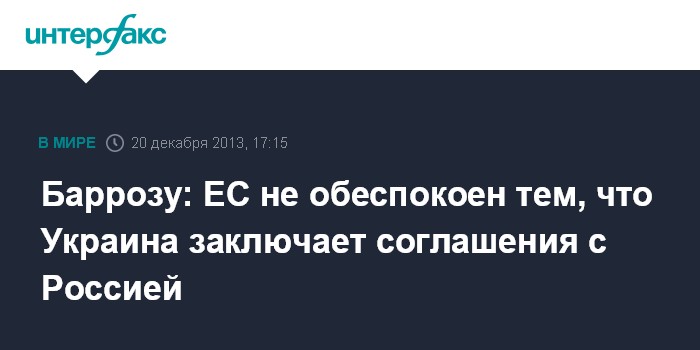 Москва. 20 декабря. INTERFAX.RU - Европейский союз совершенно не обеспокоен тем, что Украина подписывает соглашения с Россией, заявил в пятницу на пресс-конференции по итогам саммита ЕС глава Европейской комиссии Жозе Мануэл Баррозу.