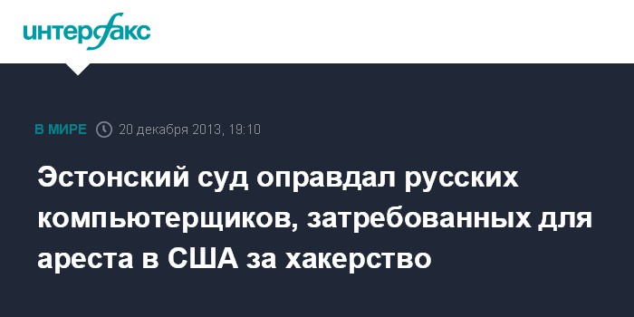 Эстонский суд оправдал русских компьютерщиков, затребованных для ареста в США за хакерство