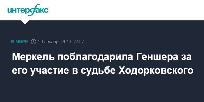 Меркель поблагодарила Геншера за его участие в судьбе Ходорковского