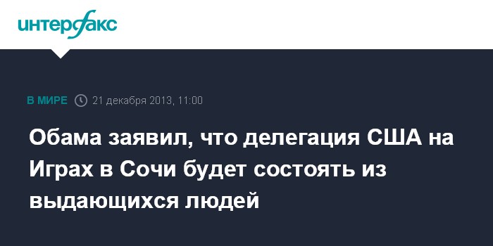 Обама заявил, что делегация США на Играх в Сочи будет состоять из выдающихся людей