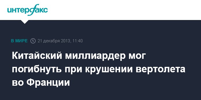 Китайский миллиардер мог погибнуть при крушении вертолета во Франции