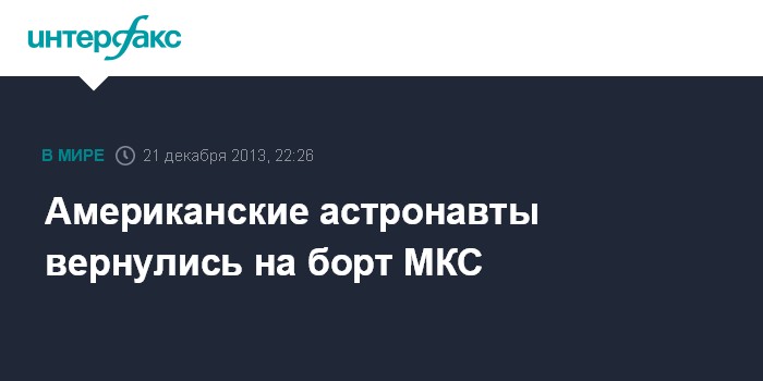 Москва. 21 декабря. INTERFAX.RU - Американские астронавты Майкл Хопкинс и Ричард Мастраккио вернулись на борт Международной космической станции после ремонтных работ в открытом космосе.