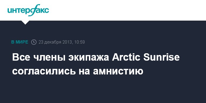 Москва. 23 декабря. INTERFAX.RU - Все активисты с судна Arctic Sunrise согласны на закрытие по амнистии уголовного дела по факту событий у платформы "Приразломная", сообщил "Интерфаксу" в понедельник адвокат Greenpeace Антон Бенеславский.