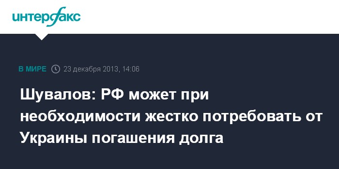 Москва. 23 декабря. INTERFAX.RU - Россия сможет потребовать погашения долга Украины, если ситуация этого потребует, заявил первый вице-премьер Игорь Шувалов.