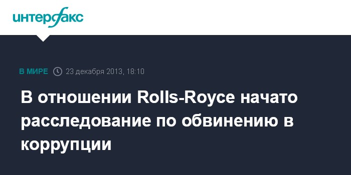 Москва. 23 декабря. INTERFAX.RU - Управление по борьбе с экономическими преступлениями Великобритании (Senior Fraud Office, SFO) начало расследование в отношении компании Rolls-Royce Holdings Plc по обвинению в коррупции на зарубежных рынках, сообщает MarketWatch.