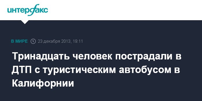 Москва. 23 декабря. INTERFAX.RU – Тринадцать человек пострадали в результате ДТП с туристическим автобусом в городе Болдуин-Парк, штат Калифорния, сообщает телеканал CBS.