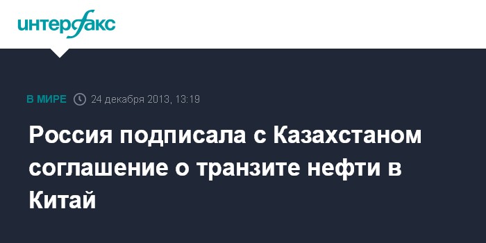 Москва. 24 декабря. INTERFAX.RU - Россия и Казахстан подписали межправительственное соглашение о сотрудничестве в области транспортировки российской нефти через территорию среднеазиатской республики в Китай, передал корреспондент "Интерфакса" с церемонии подписания.