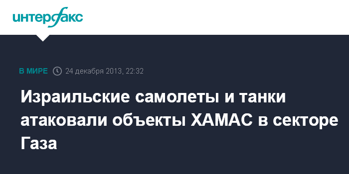 Москва. 24 декабря. INTERFAX.RU - Военно-воздушные силы и танки армии обороны Израиля подвергли обстрелу ряд объектов палестинского движения ХАМАС в секторе Газа, сообщил во вторник представитель израильской армии Питер Лернер.