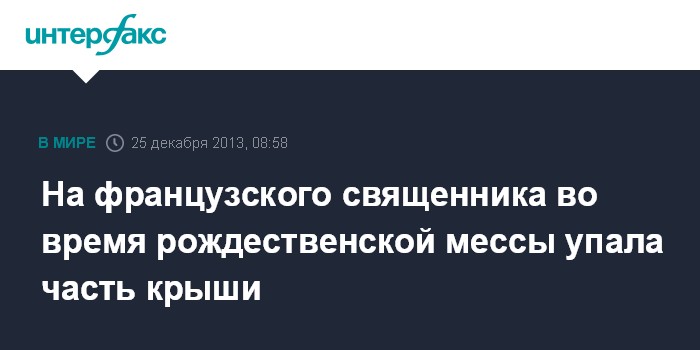 На французского священника во время рождественской мессы упала часть крыши