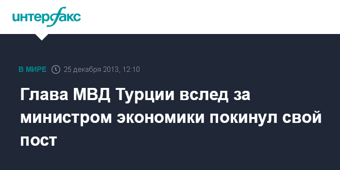 "Я обратился к премьеру (Реджепу Тайипу Эрдогану. - ИФ) с прошением об отставке в устной форме еще 17 декабря. Теперь я подал аналогичное прошение в письменном виде", - приводит издание слова главы турецкого МВД.