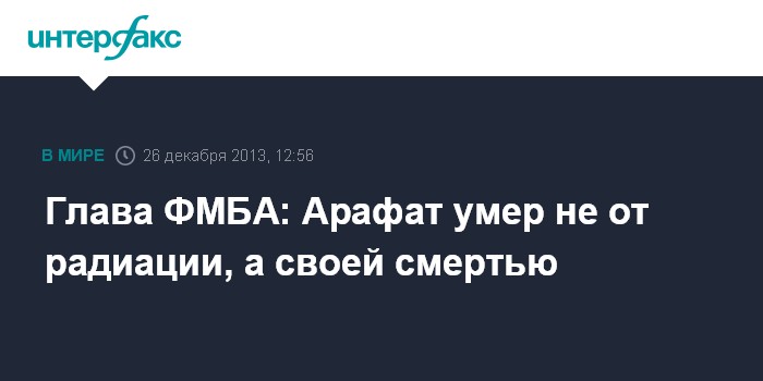 Глава ФМБА: Арафат умер не от радиации, а своей смертью