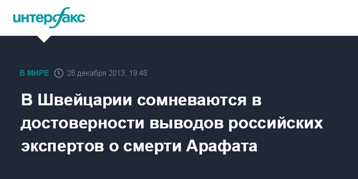 Вместе с тем, выводы швейцарских ученых свидетельствовали о наличии радиоактивных веществ в биопробах Арафата. Позднее швейцарская сторона сделала заявление о том, что отравление бывшего палестинского лидера радиоактивным полонием с наибольшей вероятностью носило преднамеренный характер.